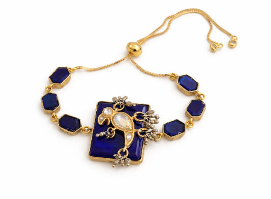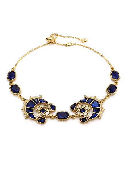 A striking cobalt blue kundan bracelet set in gold plated silver alloy.