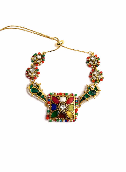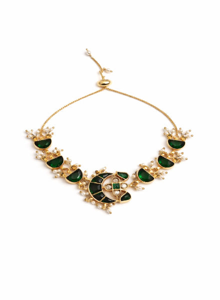 A stunning Navrattan bracelet equally at home with traditional or western wear. Accented with green...