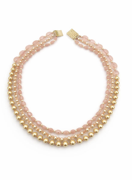 An elegant pink rose quartz necklace is accented with lustrous shell pearls. A stunning accessory...